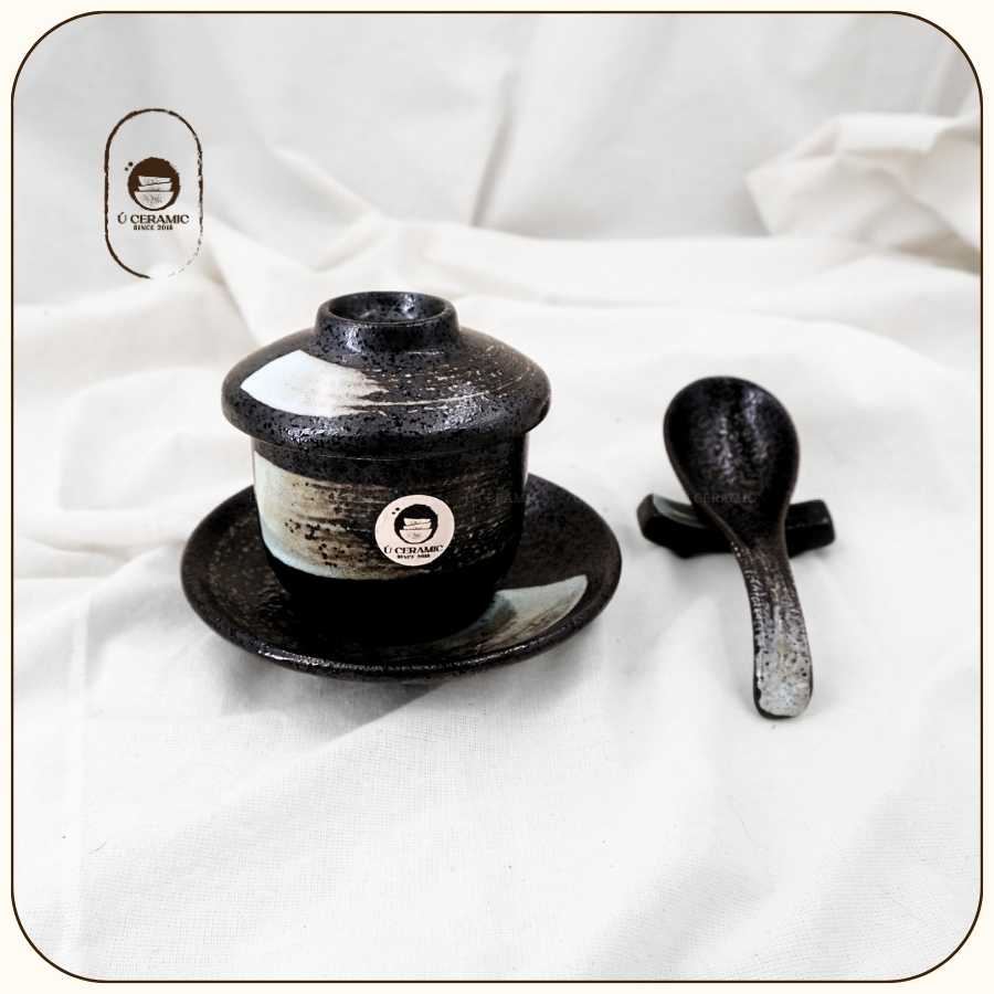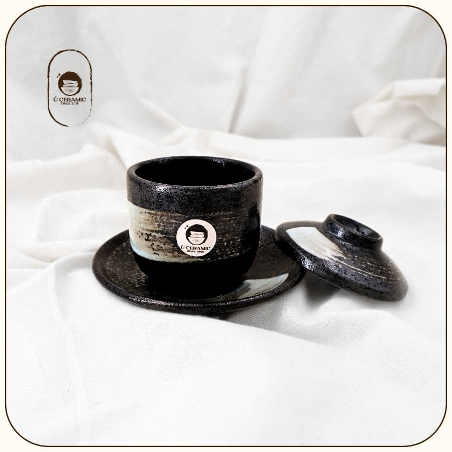 Men Đen Vệt Cọ mang đậm chất Nhật Bản. Nền men đen trầm, điểm xuyết nét vẽ tay tự nhiên. Gốm dày, cầm đầm tay. Vì đặc thù sản phẩm thủ công mộc,nên kích thước có thể chênh lệch 0.5-1cm so với quy cách. Mong Bạn thông cảm cho việc này ạ!
