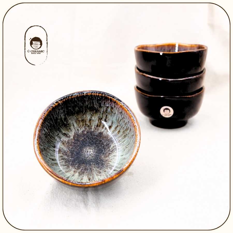 Men Hỏa Biến – Vẻ đẹp được vẽ bởi ngọn lửa. Vân men biến đổi ngẫu nhiên tùy theo nhiệt độ lò nên mỗi sản phẩm là độc bản. Do đặc tính co ngót của đất khi nung nhiệt độ cao, kích thước có thể chênh lệch nhẹ (0.5-1cm), giữ nguyên nét mộc mạc tự nhiên của gốm.