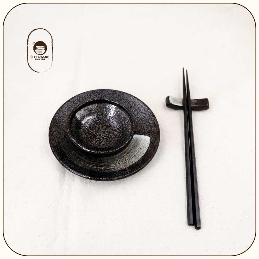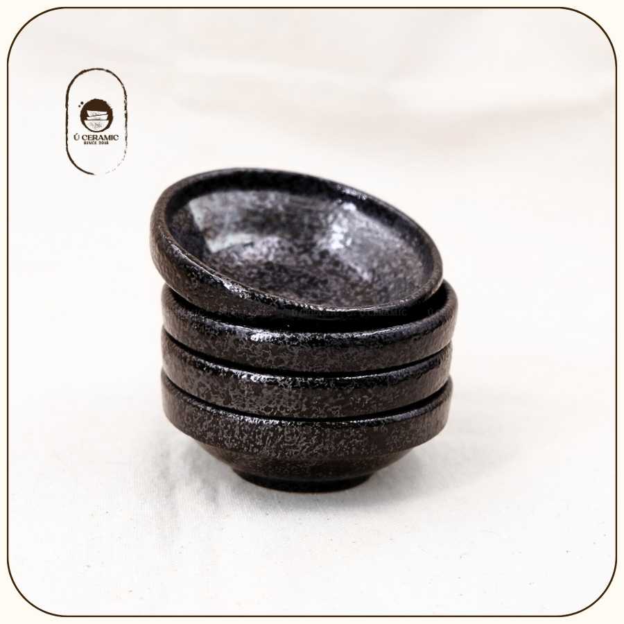 Men Đen Vệt Cọ mang đậm chất Nhật Bản. Nền men đen trầm, điểm xuyết nét vẽ tay tự nhiên. Gốm dày, cầm đầm tay. Vì đặc thù sản phẩm thủ công mộc,nên kích thước có thể chênh lệch 0.5-1cm so với quy cách. Mong Bạn thông cảm cho việc này ạ!
