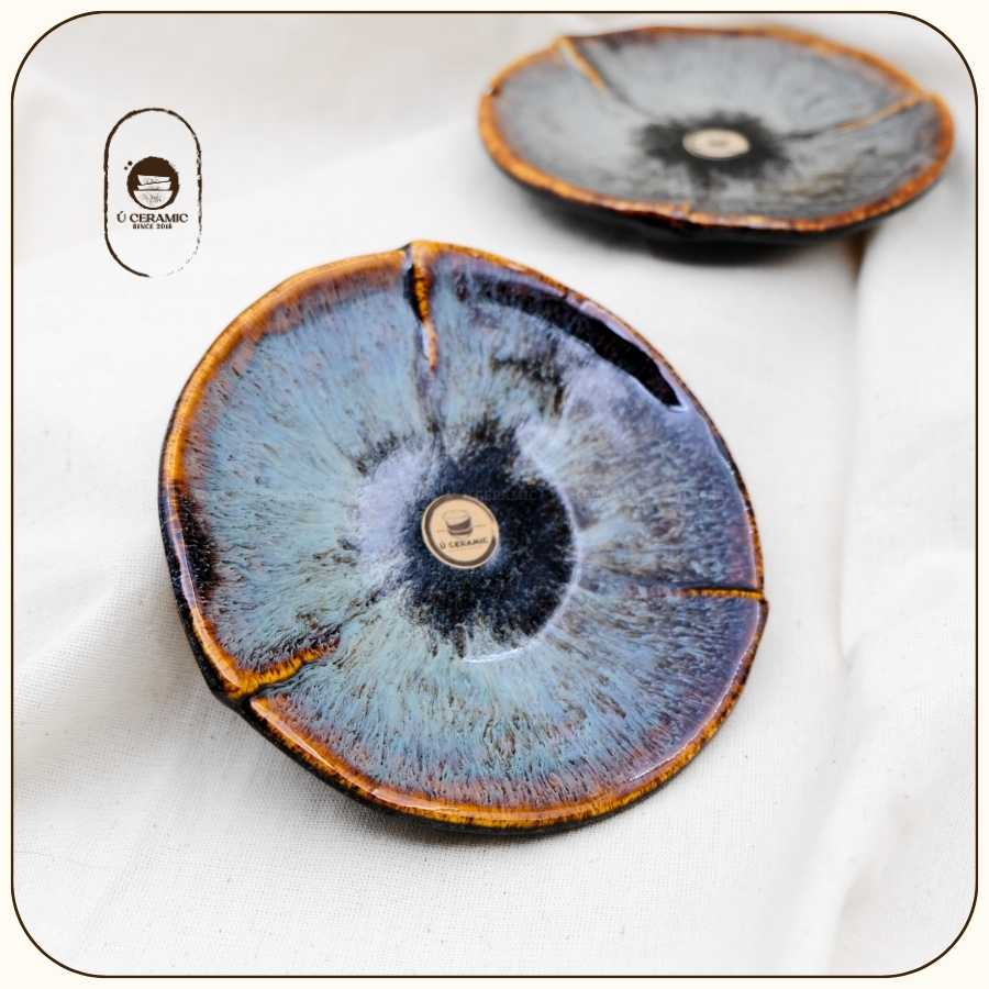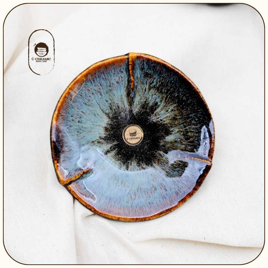 Men Hỏa Biến – Vẻ đẹp được vẽ bởi ngọn lửa. Vân men biến đổi ngẫu nhiên tùy theo nhiệt độ lò nên mỗi sản phẩm là độc bản. Do đặc tính co ngót của đất khi nung nhiệt độ cao, kích thước có thể chênh lệch nhẹ (0.5-1cm), giữ nguyên nét mộc mạc tự nhiên của gốm.