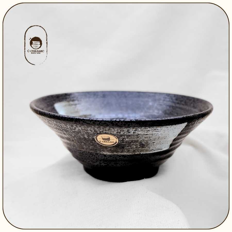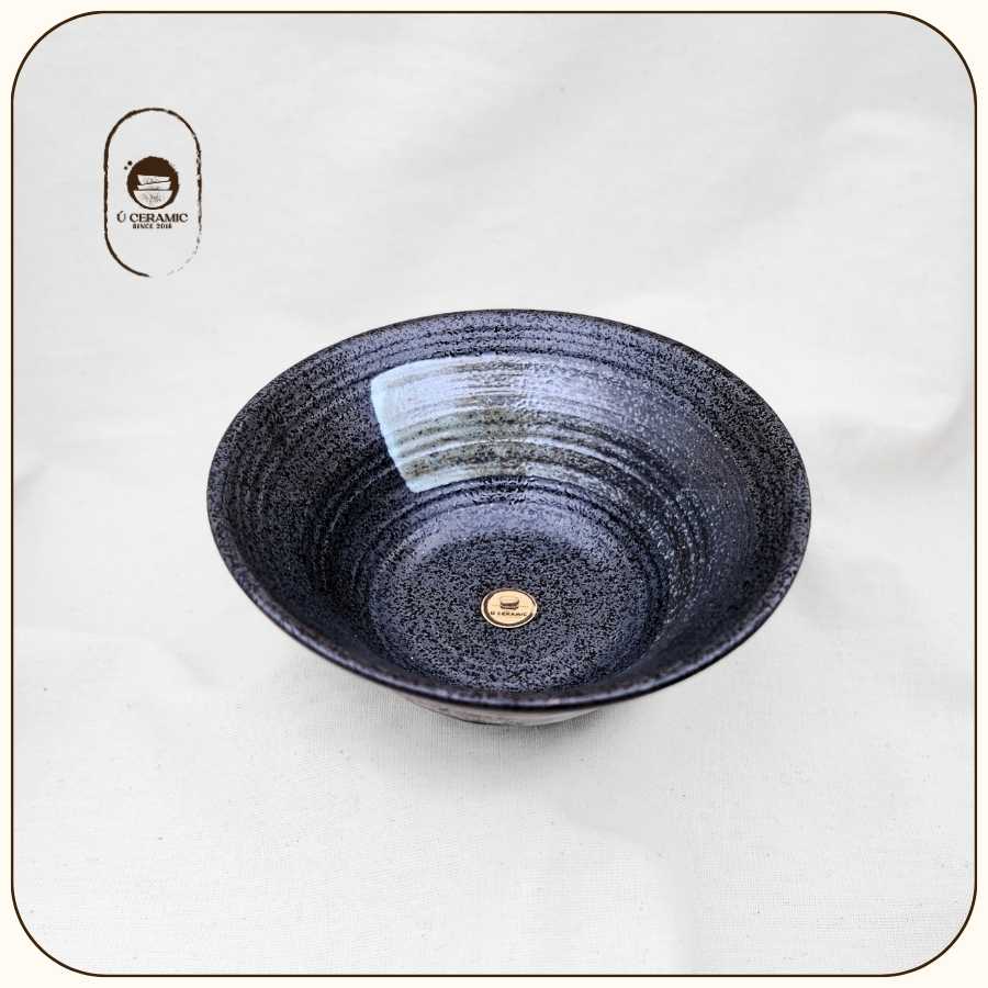 Men Đen Vệt Cọ mang đậm chất Nhật Bản. Nền men đen trầm, điểm xuyết nét vẽ tay tự nhiên. Gốm dày, cầm đầm tay. Vì đặc thù sản phẩm thủ công mộc,nên kích thước có thể chênh lệch 0.5-1cm so với quy cách. Mong Bạn thông cảm cho việc này ạ!