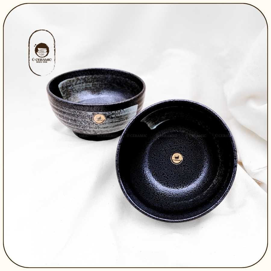 Men Đen Vệt Cọ mang đậm chất Nhật Bản. Nền men đen trầm, điểm xuyết nét vẽ tay tự nhiên. Gốm dày, cầm đầm tay. Vì đặc thù sản phẩm thủ công mộc,nên kích thước có thể chênh lệch 0.5-1cm so với quy cách. Mong Bạn thông cảm cho việc này ạ!